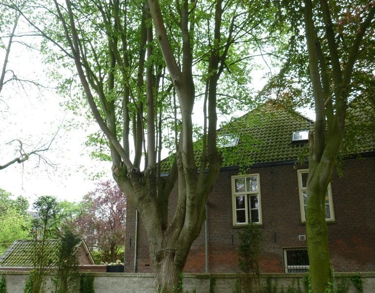 Boxtel – Nederland Zilveresdoorn in particuliere tuin. Uit de boom is een grote gesteltak gebroken. De kroon is om veiligheidsredenen kleiner gesnoeid.
