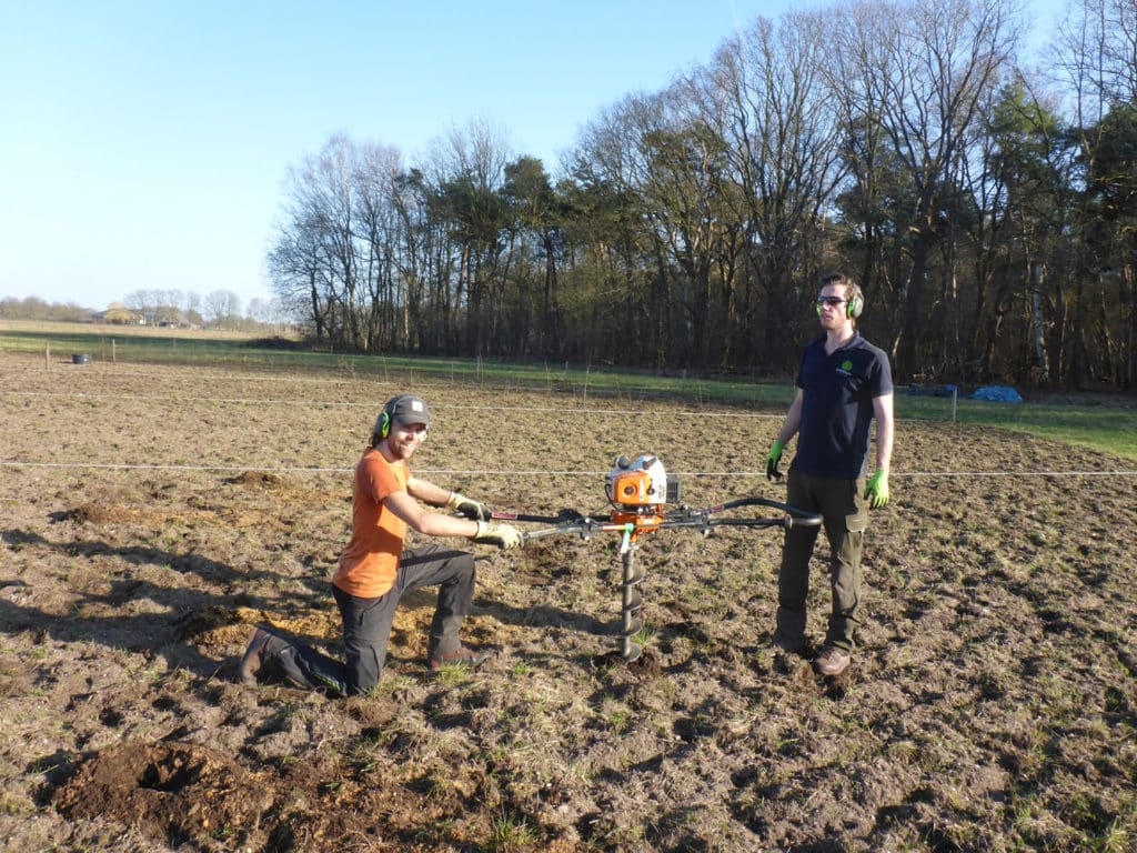 Foto 2. Boren van groeipijlers en vullen met bomengrond